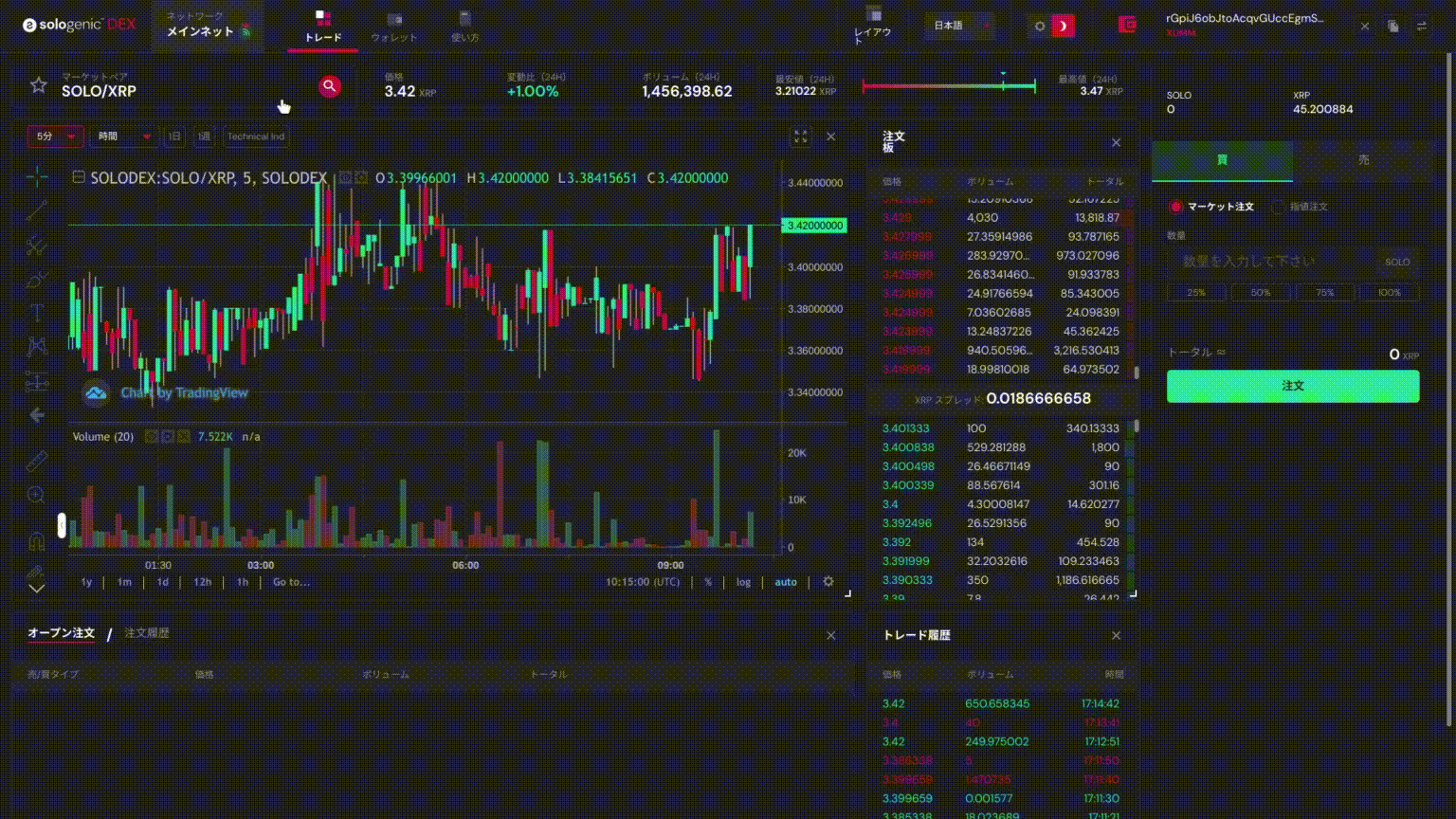 ここでは 詳細に取引する Sologenic DEX の機能説明と取引手順を解説します。